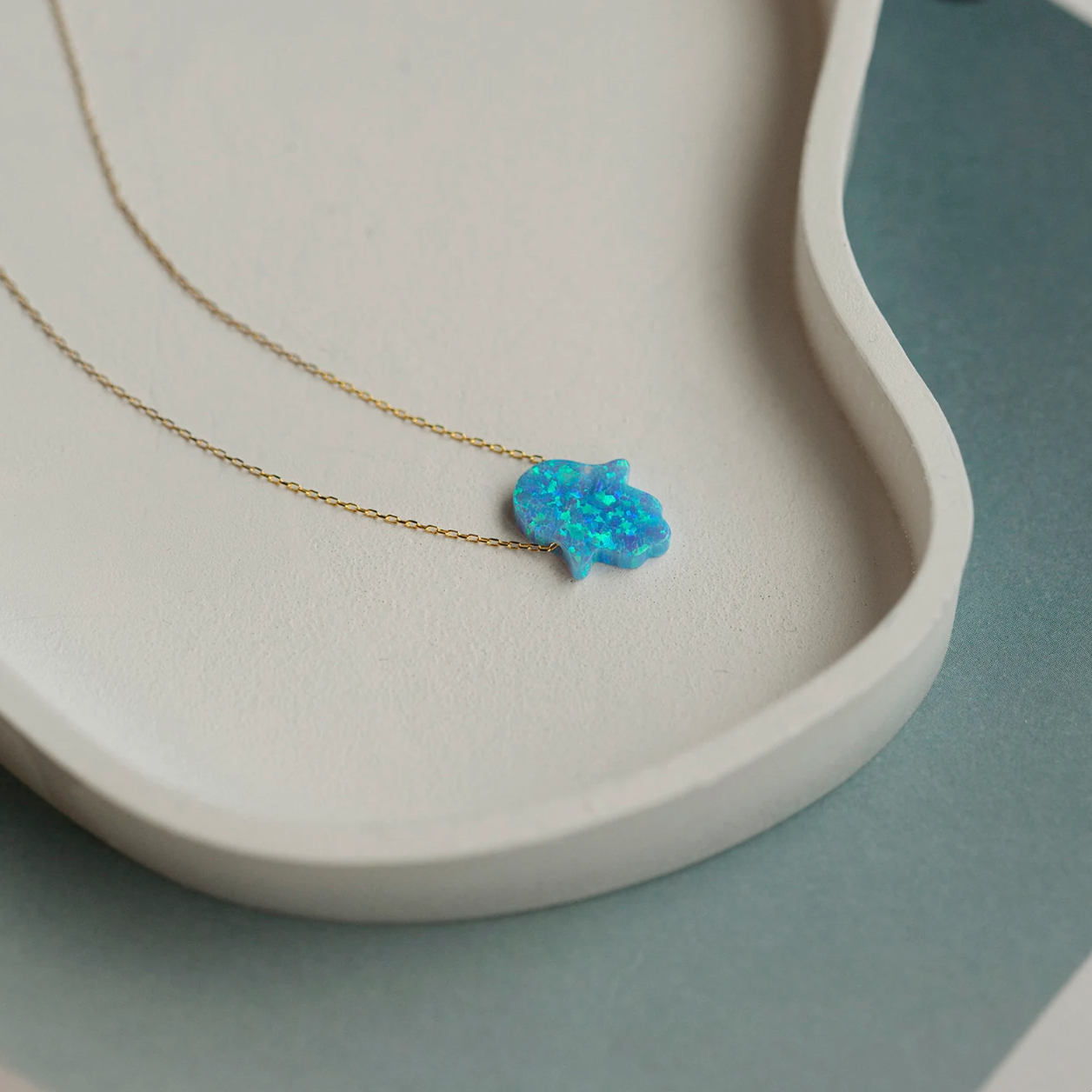 Hand of Hamsa proudly brings you an enchanting collection of handcrafted blue opal products that reflect both timeless allure and symbolic significance.